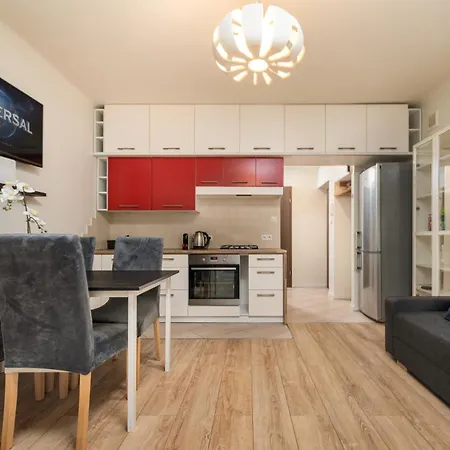W apartamencie jest aneks kuchenny z piekarnikiem i zmywarką do naczyń. W odległości kilku przecznic do przystanku autobusowego Do Fortu 01.